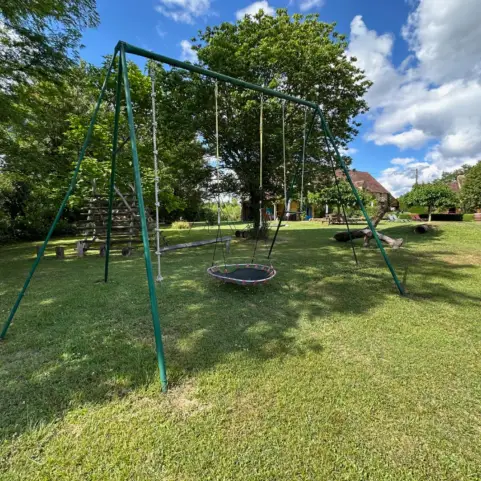Midden op het terrein is het zwembad, van 12 x 6 meter. Veilig omheind en alleen toegankelijk via een poort. Het zwemwater wordt in het voor- en naseizoen verwarmd. Rond het zwembad is een groot terras. Geen zin om te zwemmen? Op het park zijn schommels, klimtoestellen en een zandbak. En je kunt ook badmintonnen, volleyballen, tafeltennissen en voetballen: er is genoeg ruimte. We hebben ook een groot speelhuis – voor als het regent of als je schaduw zoekt.