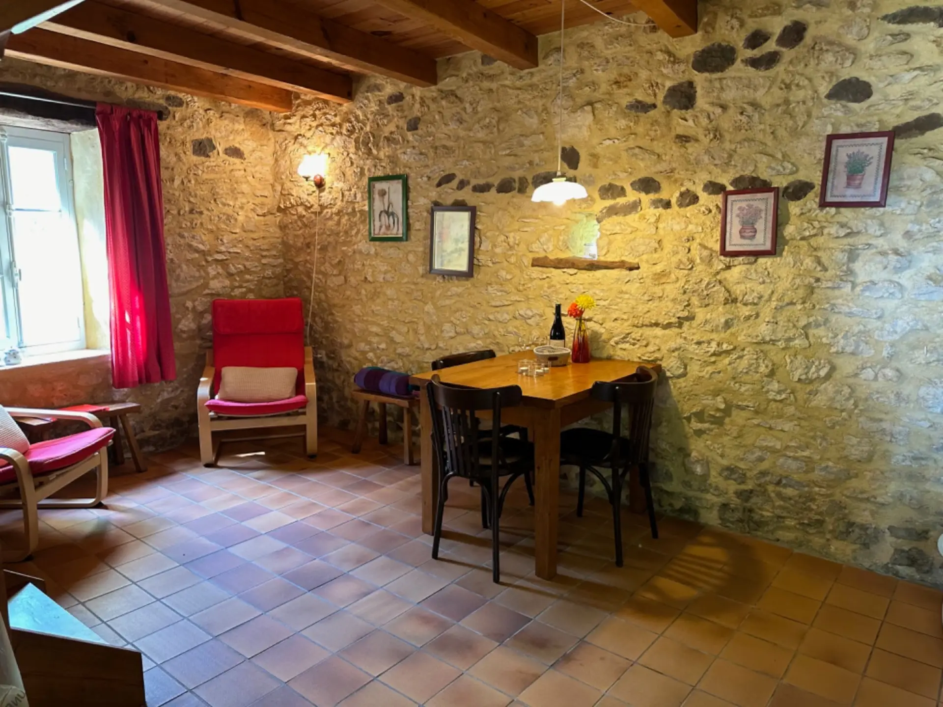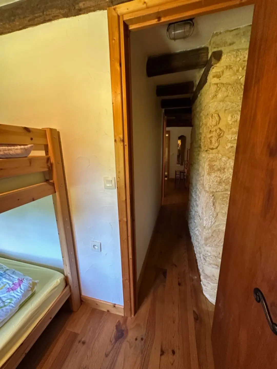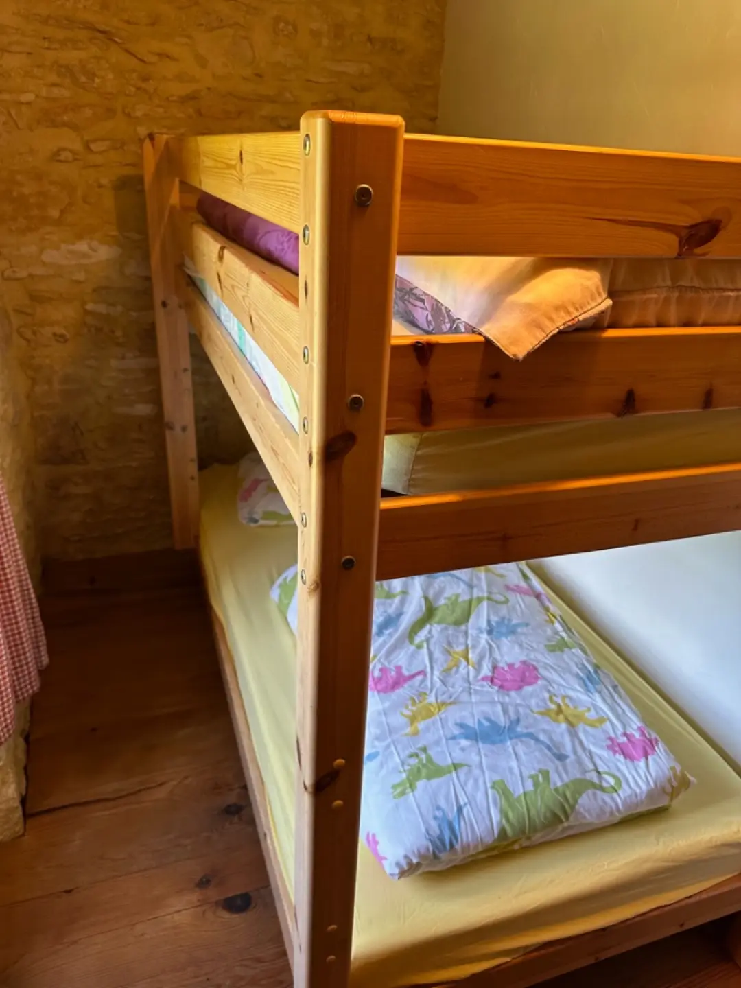 Petite Maison is misschien wel het meest karakteristieke huis op het terrein. Er kunnen 4 tot 6 personen slapen. Beneden vind je de zithoek met houtkachel, de eethoek en de keuken. De douche en wc zijn op de eerste verdieping. Boven vind je verder een slaapkamer met een tweepersoonsbed, een slaapkamer met een stapelbed en een slaapvertrek met een tweepersoonsbed. Buiten is een terras met een zitje en een parasol.