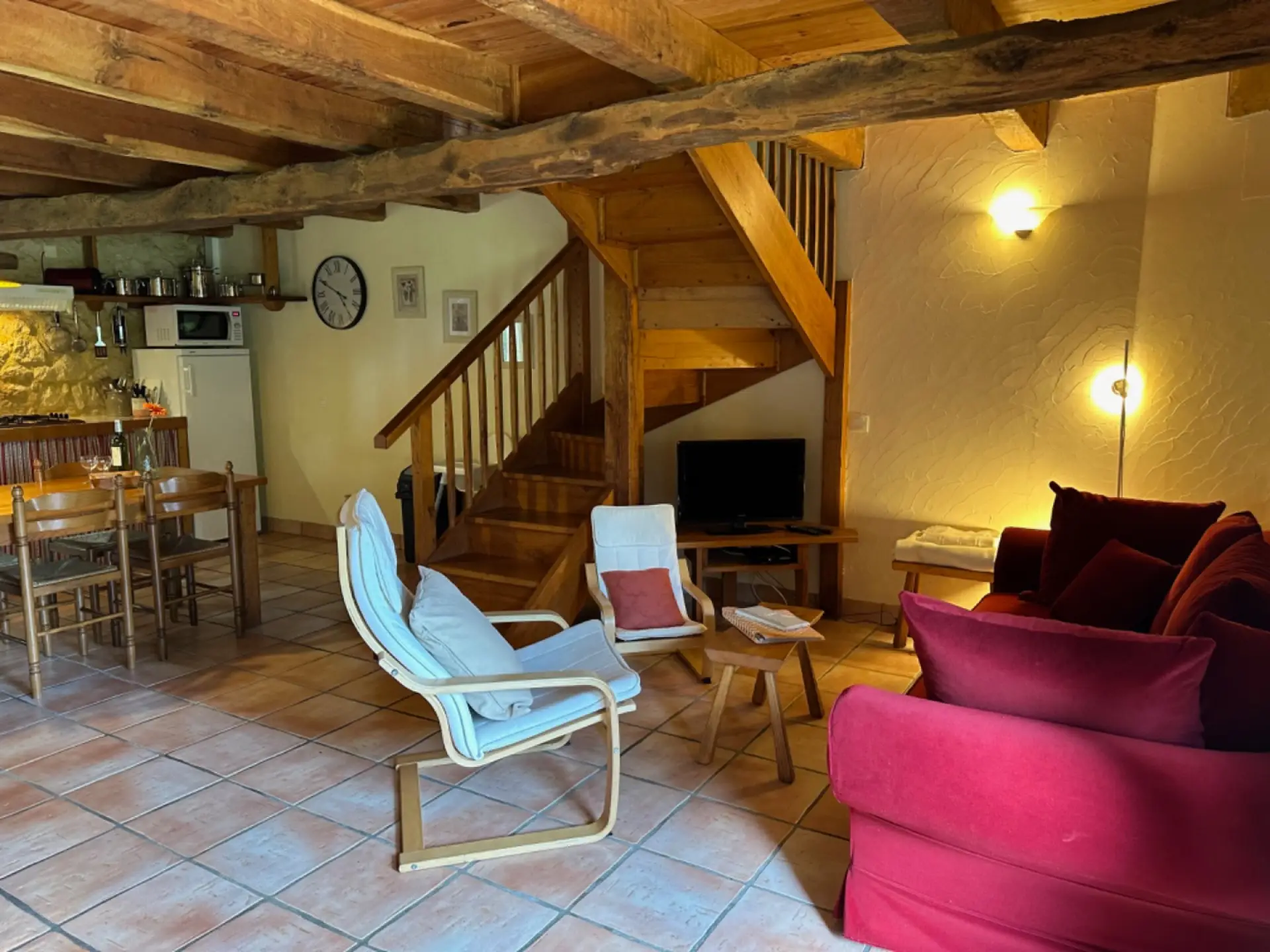 Vakantiehuis Hibou is ideaal voor 4 tot 6 personen. Op de benedenverdieping vind je de zithoek met houtkachel, de eethoek en de keuken. De douche en wc zijn op de eerste verdieping. De twee slaapkamers boven hebben elk een tweepersoonsbed. Op de overloop staat een stapelbed. Buiten is een terras met zitje en een parasol.